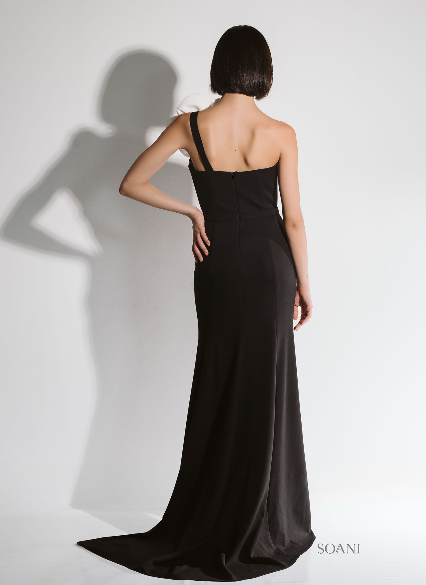Abito sirena in tessuto cady caratterizzato da una silhouette elegante e sensuale.
