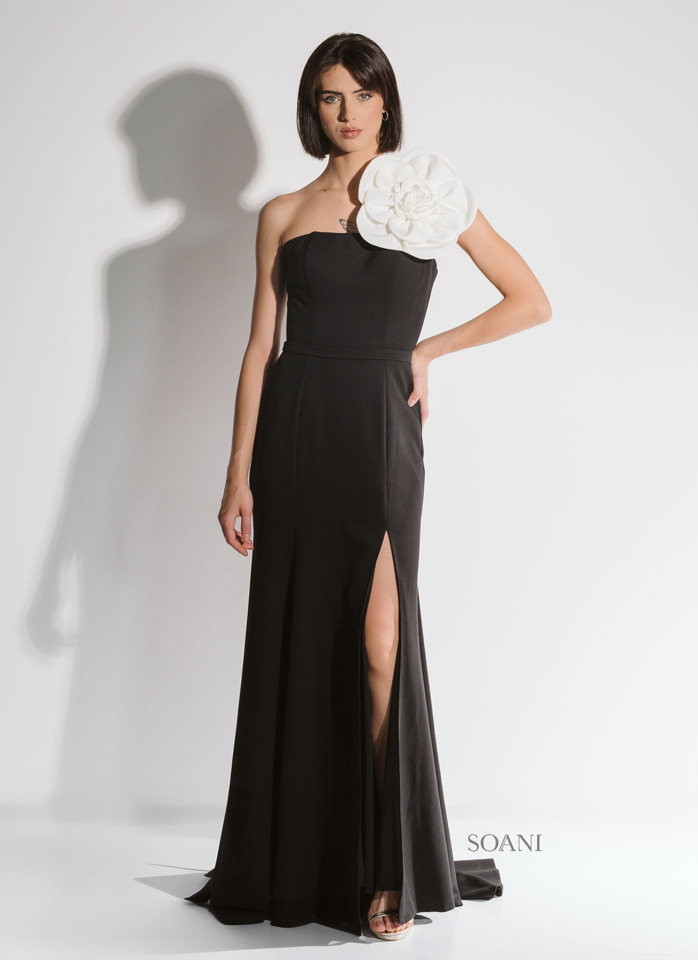 La presenza del fiore 3 d è un prezioso particolare che conferisce unicità al modello.